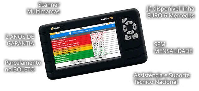 O Kaptor V6S HEAVY+ é um scanner automotivo multimarcas, desenvolvido para atender diversas montadoras de caminhões, ônibus, vans e veículos diesel leves com apenas um equipamento.